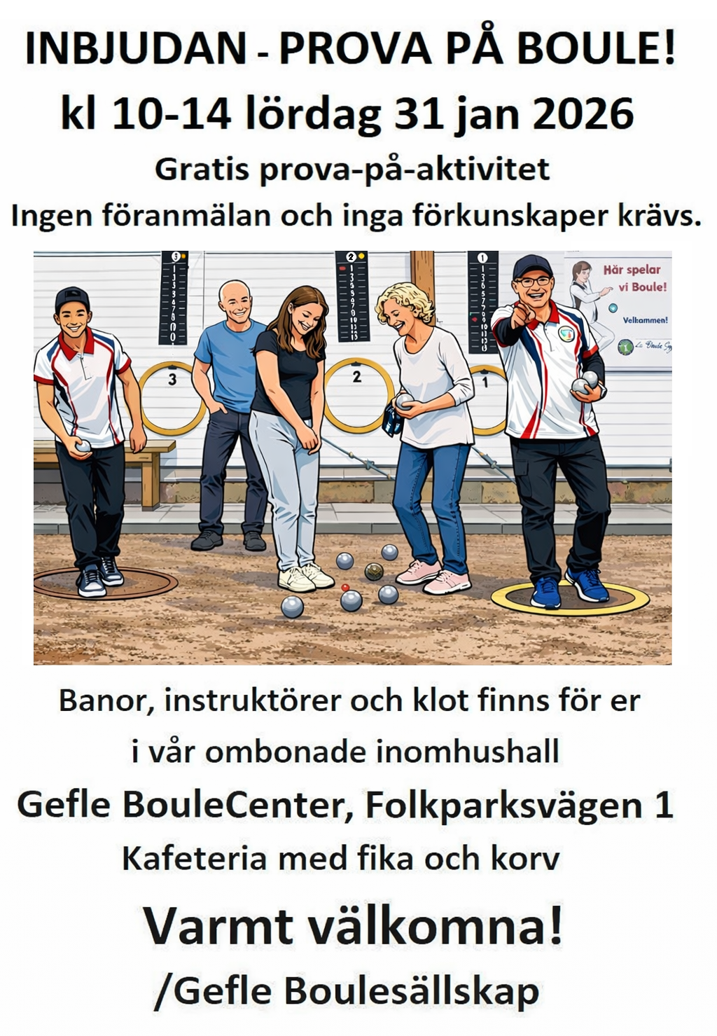 Tipsa vänner och bekanta om denna möjlighet att lära känna och förhoppningsvis fortsätta med den fantastiska sporten boule!